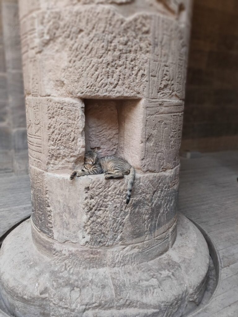 Roboante è anche il motore del barchino che ci porta al tempio di File, verso le 6.30, nel silenzio del Nilo, al sorgere del sole. Con il termine greco Philae si indicavano due isole situate nella cateratta di Aswan, frontiere e presidio militare del regno egizio, nonché centro di snodo commerciale. Gli Egizi fecero proteggere questo luogo strategico dalla dea Iside, dedicandole questo tempio, uno dei più importanti luoghi di pellegrinaggio anche per i nubiani, così come scolpito nell’”obelisco di File” (dove si intravede anche il nome di Cleopatra) che da qui Giovan Battista Belzoni traslò fino alla tenuta di Kingston Lacy, in Inghilterra. Fu tramite le iscrizioni di questo obelisco e la Stele di Rosetta che si arrivarono a decifrare i geroglifici. Prima di lui, qui giunse la spedizione di egittologi napoleonici nel 1799, poi fu la volta di noi italiani, che entro la fine degli anni Ottanta del Novecento riportammo alla luce il tempio allora semi-sommerso di Iside, trasferendolo a 550 m di distanza, nell’isola di Agilkia. Di fatto, sotto la direzione dell’architetto Giovanni Ioppolo, il tempio venne circondato da delle dighe di protezione, successivamente smontato e ricostruito nell’attuale sede. Il complesso monumentale a rischio, già noto come Perla del Nilo, ricordato dall’opera di Pierre Loti Mort de Phile, portò i paesi Unesco a bandire una gara internazionale per il salvataggio dei monumenti di File.