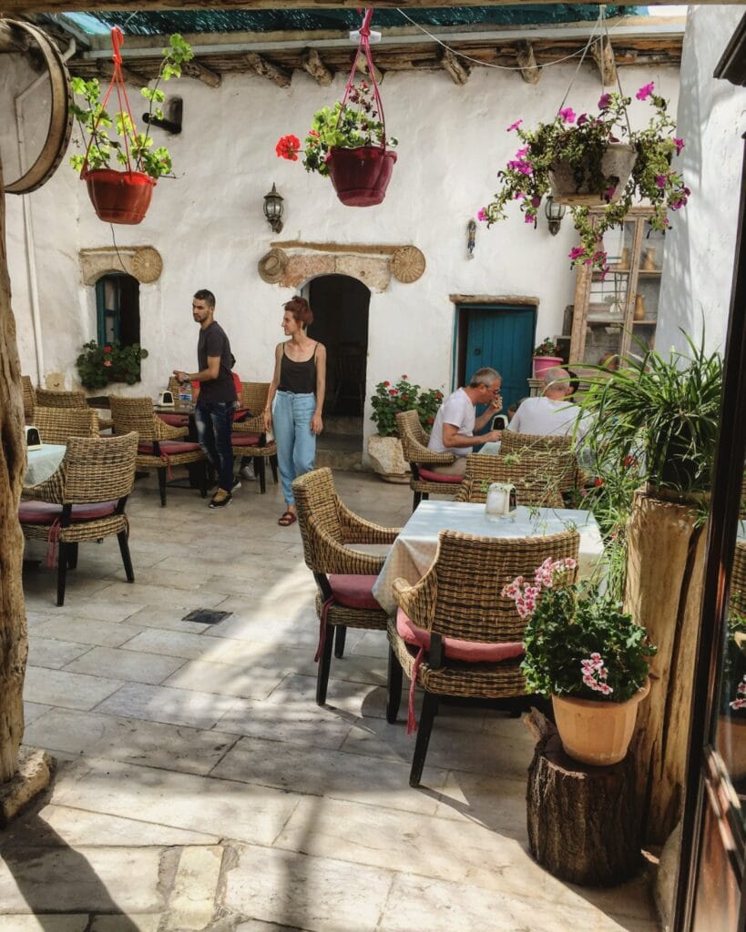 Exactly here, in the middle of the shacks and next to a small historic centre, stand the ruins of the Temple of the Sun. Having abandoned our companions, who suggested a lunch break through a packet of chips at the entrance to the site, we gotlost in the narrow streets of Baalbek’s shacks. Entering a patio through a small doorway, we spotted a table laid. We would visit the temple only after lounging here, at the Baalbek Guest House, an oasis of peace where we refreshed our jaws with juicy prickly pears and hummus.