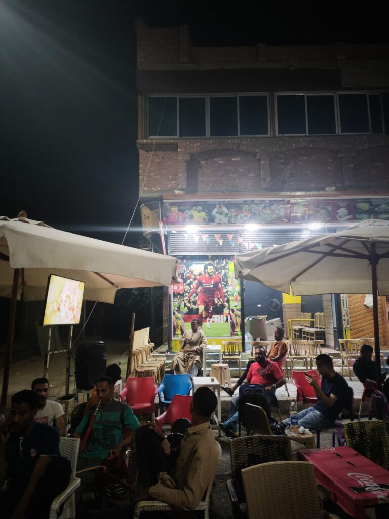 It is ten o’clock in the evening, we are waiting to tie up with the other motorboats and dock at Kom Ombo. A cloud of dark pollution prevents us from breathing, we stop for another twenty minutes, some of us put on face masks on advice of our guide. It is the second day of Eid Ramadan, the chaotic streets of the city are packed with people in galabeya, the sportsbars celebrate the one and only football demigod Salah, shisha is smoked in the ‘wedding halls’, the fastfood restaurants overflow with hungry patrons, the purification of Ramadan is finally over. None of them seem to struggle to inhale what is cooking my lungs. The degree of pollution seems to be part of a horrifying habit.