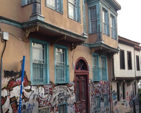 It’s pouring rain in Thessaloniki, but no one seems to mind it here at dinner, under the open-air tents of the Rouga taverna. A
