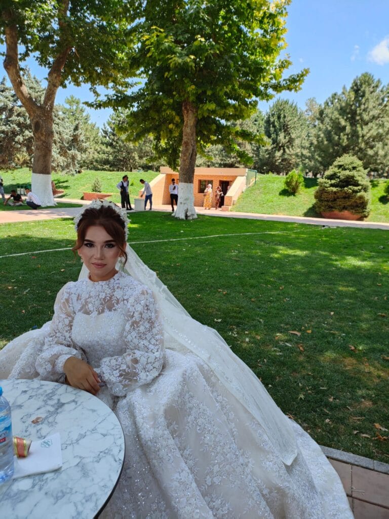 I arrive in the presence of the Registan Palace, an astonishing setting on a large esplanade. It was here that my driver had met Charles of England, when on an institutional visit some twenty years ago, he had stopped to chat with the carpet sellers who worked in the very bazaar of the palace of the same name. ‘That’s why I then went to the UK, that meeting marked me, I took it as a sign of destiny. Aaargh leave that never-grown-up child of his, Harry!”. Registan is a symbolic square for the Uzbeks, here and there are photo shoots of happy couples, the brides wear very dramatic dresses, they look like Madame Thussauds!