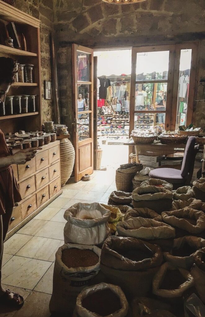 It was a port of extraordinary prosperity, whose archaeological sites still bear witness today: the Egyptian temple of Baalat Gebal (2800 BC), the Roman amphitheatres and baths, the Crusader castle and the church of St John Mark (built in the 12th century), were through centuries assimilated by the Genoese, the Mamluk and the Ottoman Empire. Today, Byblos, a Christian-Maronite stronghold, appears an enchanting Italian ochre-stone “borgo”, where the neat and graceful spice market intersects with cobbled lanes circled by with bougainvillea. Down by the harbour, the prestigious Byblos Jazz Festival attracts internationally renowned artists every summer. Byblos is an oasis of tranquillity, quiet, floral and enlivened by fine restaurants. It was here, Adonai Le Petit Libanais, that I tasted the best hummus of the Lebanese expedition (for the record, I promised myself I would order one at every place we would sit). Our lunch: a glass of Lebanese red wine, hummus and some meatballs grilled on a flaming ceramic crock. Freshly baked pita. That’s life.