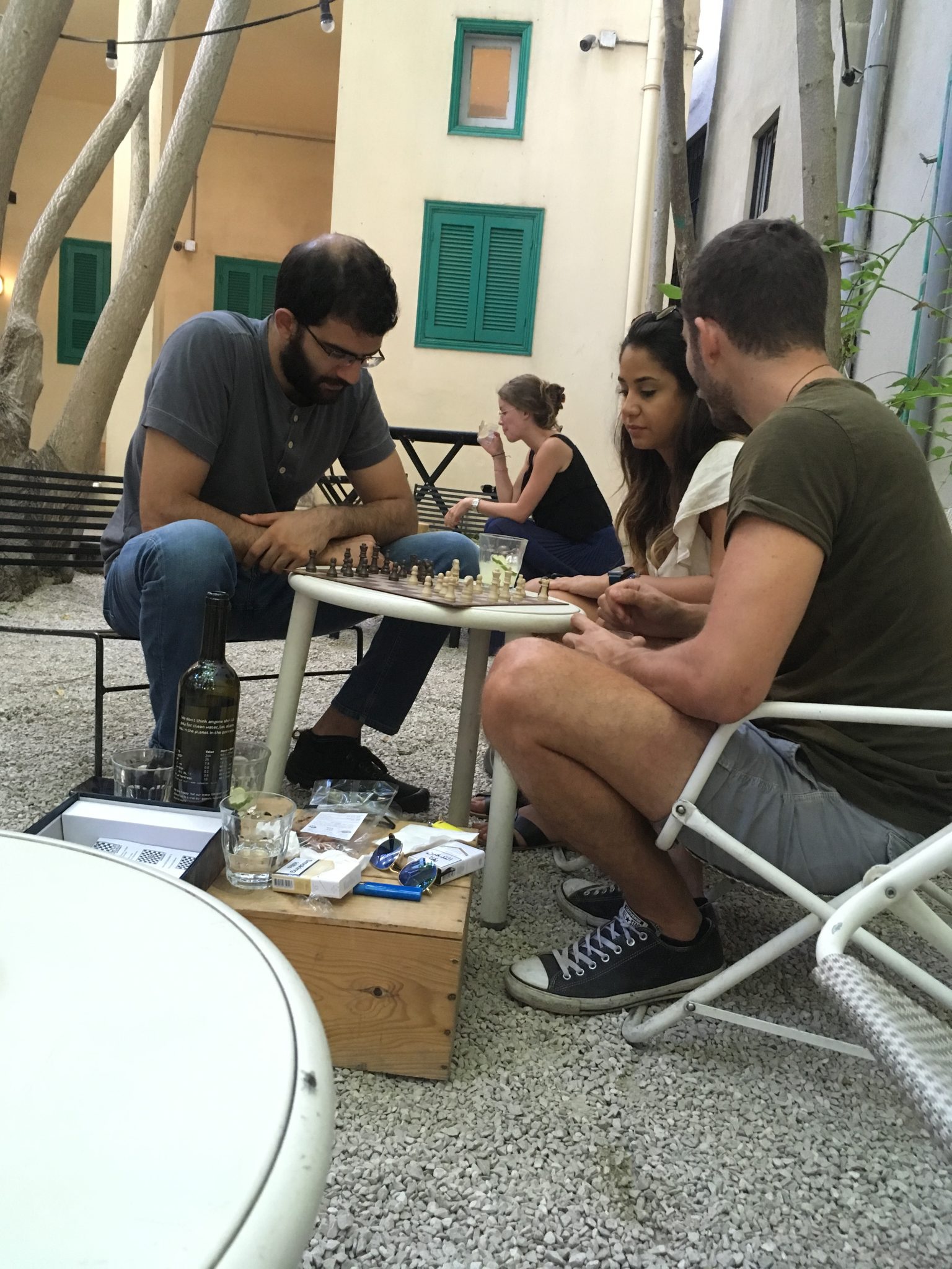 Eppure è il simbolo di uno scintillante passato e dell’identità che accomuna agli abitanti della città. Perciò, non c’era nulla da cercare, da “vedere”, c’era solamente da confondersi con la massa umana che circolava per quelle strade e capire che era proprio quella l’anima del quartiere. Soprattutto, capii che la bellezza di Hamra non stava tanto negli esterni, quando negli interni, nei locali più caratteristici che si raggiungevano tramite scalette defilate e viuzze secondarie. Così grazie al fiuto della mia amica ci piazzammo nel patio del T-Marbouta, un localino informale e healthy-chic che serviva piatti tradizionali a un prezzo ragionevole. “This is for you, you have the same eyes”. Toh! Ancora adesso porto il braccialetto portafortuna che mi aveva regalato quel cameriere. Il classico amuleto con l’occhio di Allah che scaccia il malocchio per mezzo Mediterraneo, dalla Grecia alla Turchia, al resto del Levante e inoltrato Medio Oriente. Avere a fianco un individuo come Maria Chiara può recare spesso piacevoli sorprese: “Hai mai giocato a backgammon?” “Tavli?(sapevo cosa fosse solo in lingua greca). Ho sempre guardato, ma mai provato”. Mi girai e vidi che quasi tutto il locale stava giocando. Erano circa le cinque e famiglie e gruppi di studenti stavano bevendo il thè e il caffè, accompagnandolo con knafeh, biscottini, marmellatine, labneh. Una cosa notai, le loro tavole erano sempre piene, ma non era mai necessario finire il cibo, quasi dovesse tenere compagnia. “Sai che c’è? Giochiamo”. Oggi grazie a Maria Chiara so giocare a backgammon, quantomeno nella versione armena, quella che lei aveva imparato. Devo ancora capire quante tecniche esistono. La sera successiva avremmo anche partecipato a un minitorneo di backgammon ad Hamra.. Era scivolata un’ora abbondante! La mia tabella di marcia era in pericolo. Avevamo in corpo come minimo già 10 km di cammino, ma dovevamo recarci a Manara a vedere le Raouche rocks al tramonto!