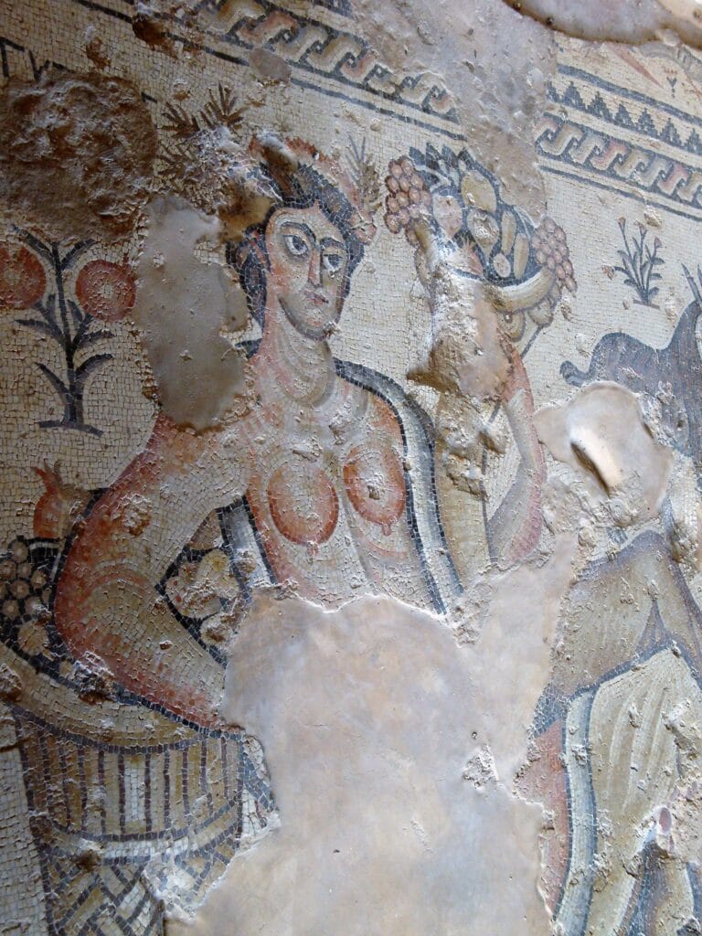 Gli scavi del sito archeologico sono stati effettuati dall’ Università di Torino, che ha dato alla luce resti risalenti al IV secolo a.C. La storia e l’architettura di quest’antica città riproducono influenze ellenistiche, giudee, romane, bizantine, islamiche, crociate, ottomane. Tra le strutture in rilievo spiccano un teatro romano, due chiese paleocristiane, una fortezza crociata (poi passata in mano ottomana a britannica), e quaranta meravigliosi mosaici. Resti in abbandono, solitari, memori di passata grandezza. L’unico sito oggi in funzione è un’antica sinagoga, dove assistiamo a una festa di Bar mitzvah, la celebrazione religiosa con cui i giovani di religione ebraica ricevono le leggi della Torah e accedono all’età adulta (a 13 anni i ragazzi, a1 12 le ragazze).