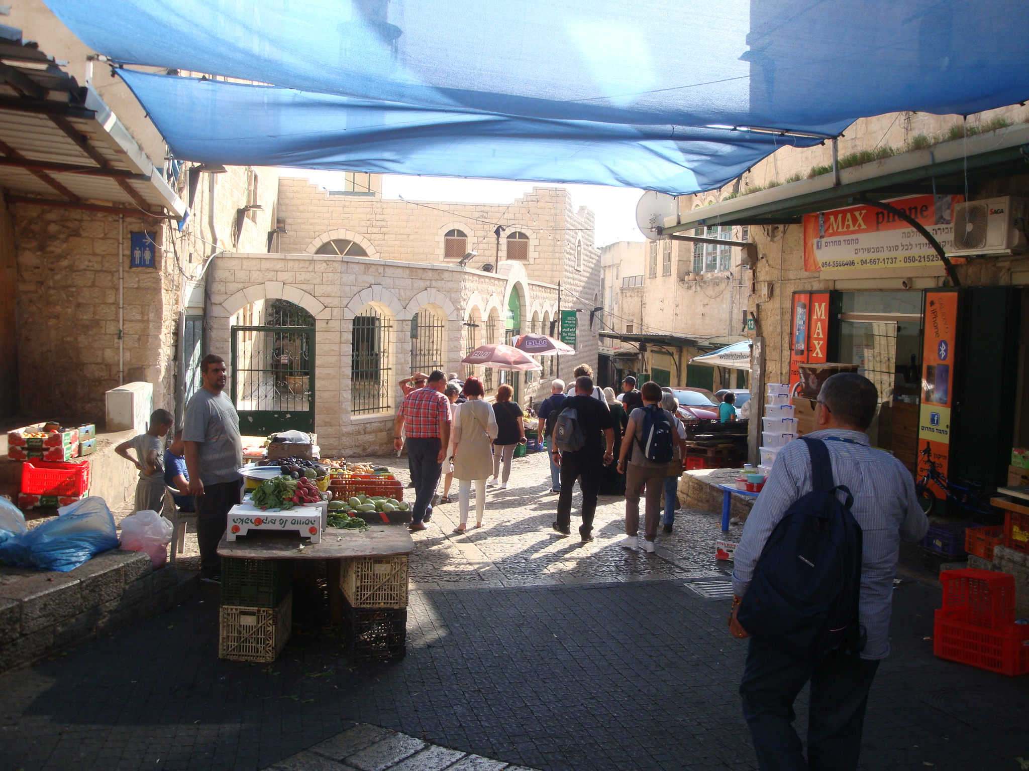 Il centro di Nazareth custodisce gli eleganti e imponenti edifici del Mandato Britannico, che si susseguono nelle viette via via più intricate della città vecchia, dove abbondano forni rudimentali e venditori ambulanti di datteri, fichi e pannocchie in prossimità del mercato coperto a gestione palestinese. Qui è ubicata la Moschea Bianca, focolare di scontri e resistenza musulmana nel passato tumultuoso della città, proprio dietro a una delle grotte in cui, secondo quanto tramandato, predicava Gesù. Per accedervi è necessario annaspare tra venditori di ibrik (caffettiera mediorientale) e souvenir di ogni sorta, che riesco a distrarre solo menzionando Koko Asayan, un cantautore armeno venerato nella compagine mediorientale e a quanto pare dall’intero mercato coperto di Nazareth, che lo trasmette senza posa dagli altoparlanti. Più avanti la Basilica dell’Annunciazione raccoglie masnade di fedeli che si accodano per visitare la famosa grotta dell’Annunciazione. La giovane Basilica (1969) è inserita in un notevole complesso monumentale, è oggi il monumento simbolo della città, visibile da quasi ogni angolo della stessa, e fulcro del principale indotto turistico.