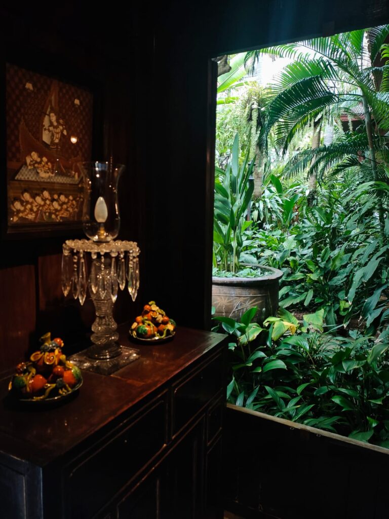 Il the Oss bar è la metafora di un uomo, Jim Thompson, il farang più enigmatico, iconico, memorabile della “città degli angeli”. Costui sbarcò ad Algeri tramite l’Operazione Torch, nel giugno del 1943, per preparare lo sbarco in Sicilia. Già reclutato dall’intelligence americana in tempo di guerra, nel gennaio del ‘45 si spostò nel teatro del conflitto indo-birmano fino a quando i giapponesi non si arresero. In seguito Jim, con il suo rayban wayfarer, si unì al movimento di liberazione thailandese giungendo nella capitale il giorno di ferragosto del 45. Non lasciò mai più la Thailandia, divenne un attachè presso l’Ambasciata americana di Bangkok, fino a quando lasciò l’incarico per rimanere nel Siam in veste ufficiale di businessman. Il principe dei farang sopraffini è lui, occidentale, faccendiere, vizioso, perspicace, multiforme, astuto, irresistibilmente imperscrutabile. Proprio come la sua dimora, che ho appena finito di visitare: un’accozzaglia di oggetti e delizie architettoniche adombrate dalla natura tropicale, che cresce rigogliosa ai piedi dei grattacieli della metropoli chiassosa, inquinata, umida e maleodorante.